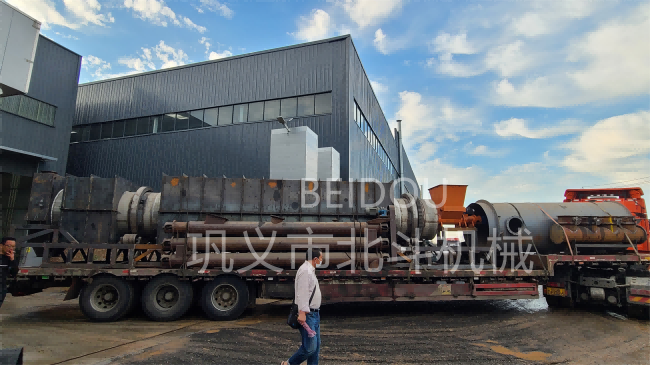 雨停太陽出,迎著藍天與白云,大型連續式麻桿炭化設備在這樣的好天氣中裝車完成,駛出廠區大門,穩穩向著客戶所在地出發。